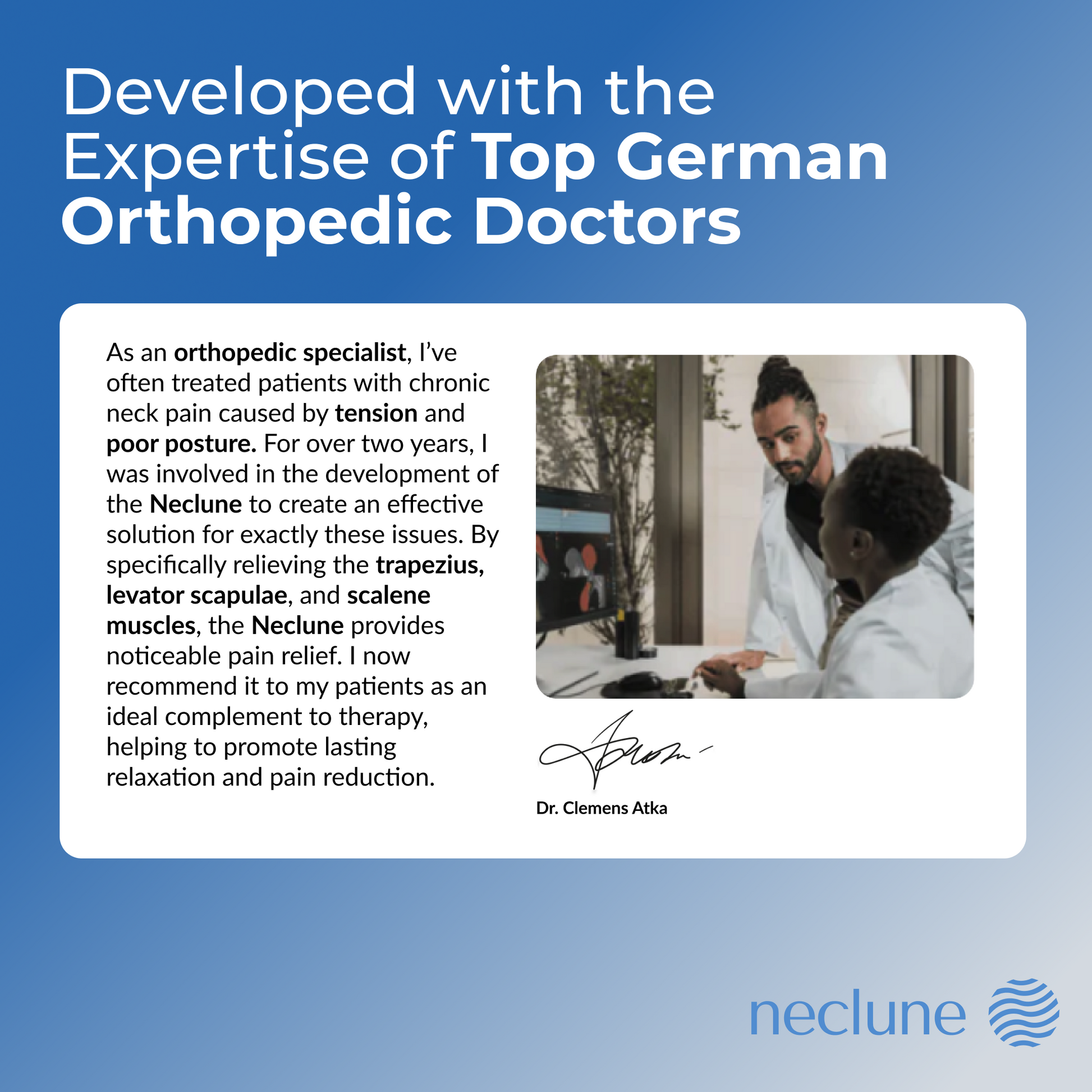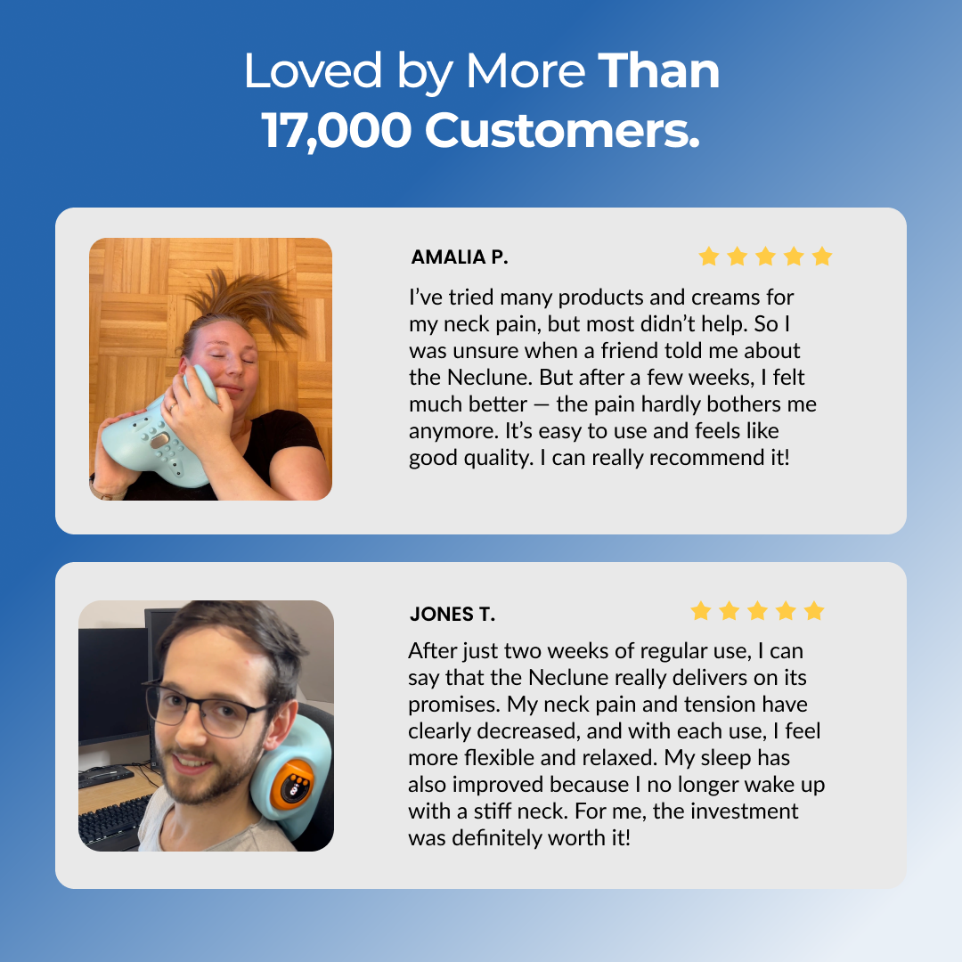 Vous souffrez de douleurs au cou, aux épaules ou aux disques vertébraux ? Le masseur Neclune® combine étirement, massage, EMS et thérapie par la chaleur pour libérer les tensions et améliorer la circulation sanguine.