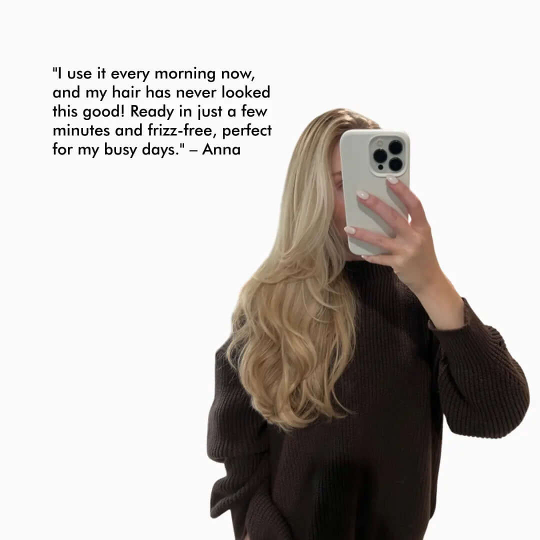 "Découvrez par vous-même pourquoi ce produit est le favori de milliers de femmes dans le monde. Choisissez la brosse soufflante et profitez de cheveux coiffés comme au salon."